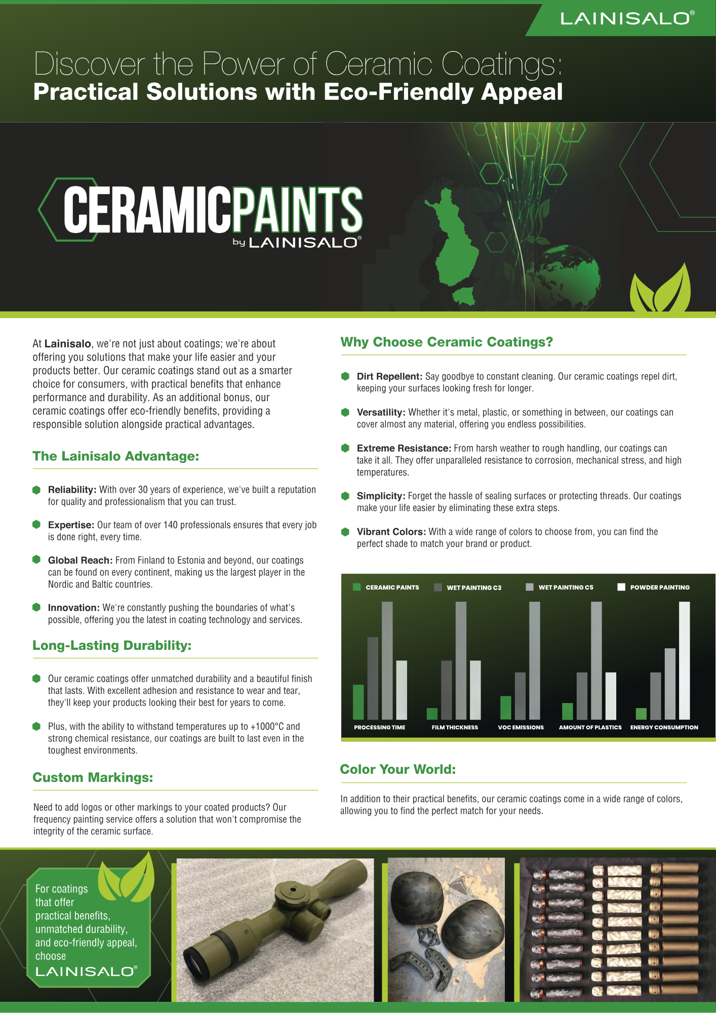 Founded in 1990, Lainisalo Oy is Finland’s leading subcontracting paint and surface-treatment company, specialising in large-scale coatings. Lainisalo also has a strong track record in product and advanced materials development, including the patented ViralSafe and Piranha Stealth material.