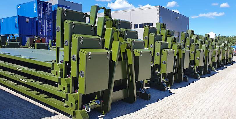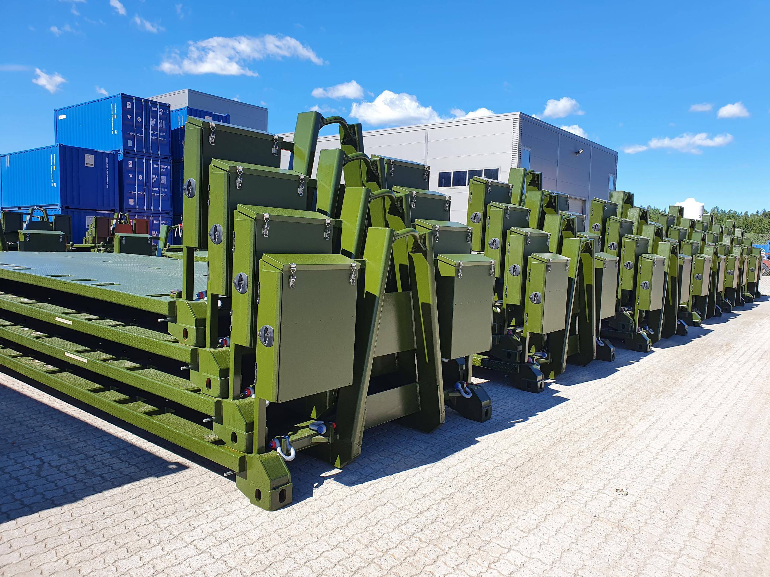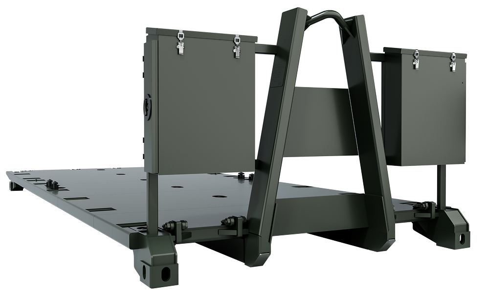 A versatile and proven logistics platform, the Nordic Shelter Flatrack is a key component of the Norwegian Armed Forces' RMMV hook-lift transport system. Built to ISO and STANAG standards, it offers high payload capacity and can be stacked up to four units high for efficient deployment. Delivered in over a hundred units, the flatrack is adaptable for transporting containers, palletized goods, and vehicles, including M113, BV 206, and other vehicle classes under 15 tons. Integrated lashing points and front-mounted toolboxes can be customized to meet specific operational needs, ensuring flexibility across a wide range of cargo types.