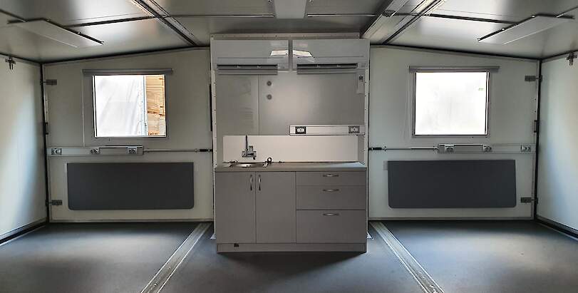 The solid ISO steel frame, the unique hinge construction in extruded aluminium, the high-quality sandwich panels, integrated insulation, vibration resistance, reinforced corners, and rubber gaskets ensure a durable shelter that meets the harshest requirements for climatic conditions and long lifetime. Suitable for all uses requiring highly mobile facilities, providing good working environment and autonomous operation.