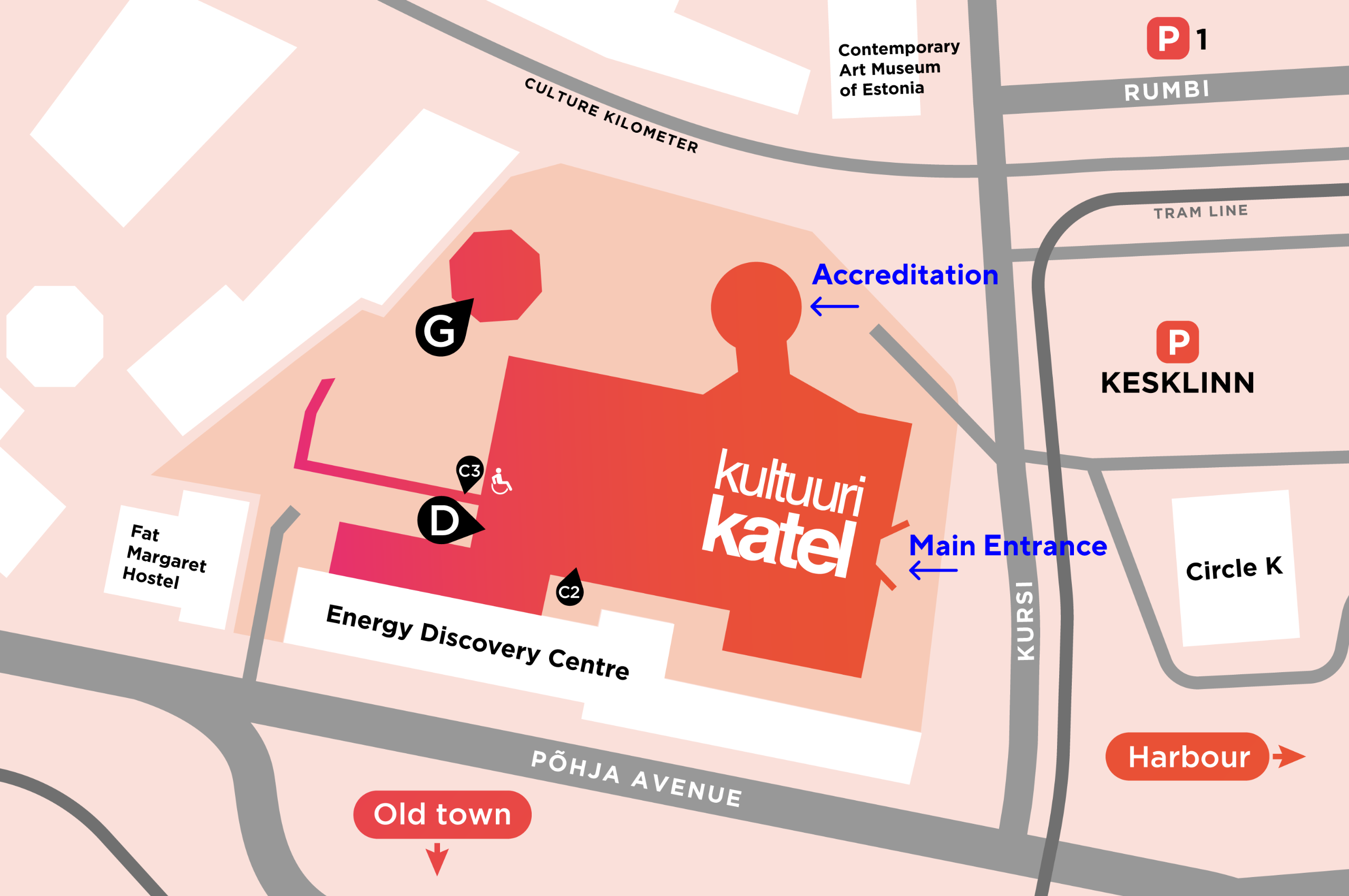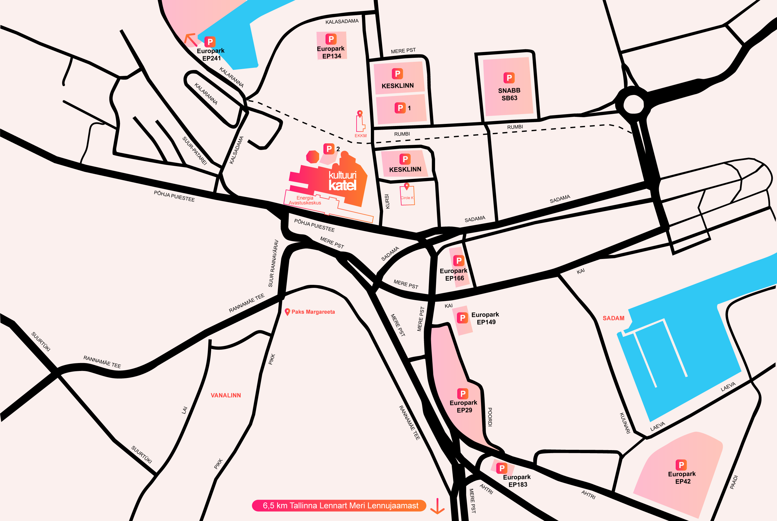 - Visitors of the Tallinn Creative Hub can park their cars in the paid parking area near Tallinn City Hall.